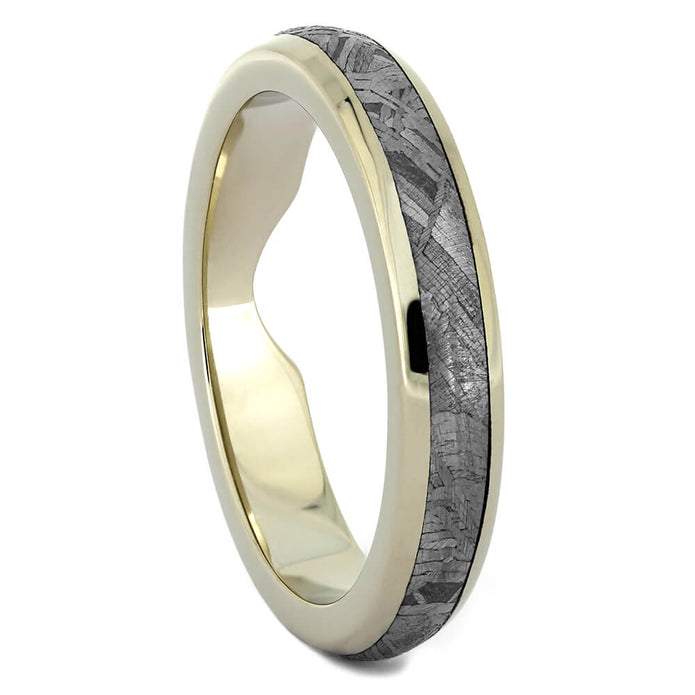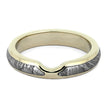This Gibeon meteorite wedding band to pair along any engagement ring for a unique and stellar bridal set. When you design a customized wedding ring with us, we will measure your engagement ring and make sure your wedding band fits perfectly for a wonderful bridal set like no other.