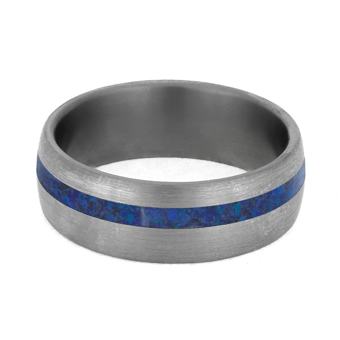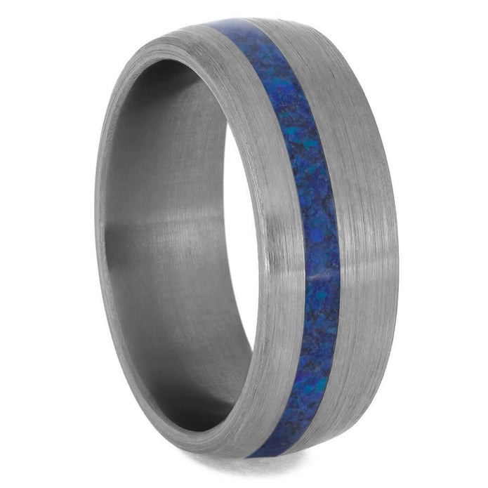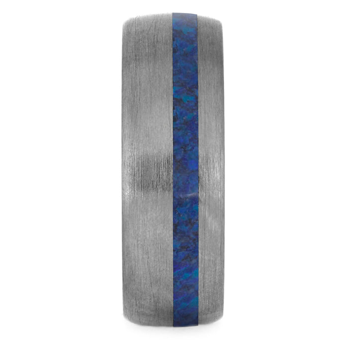 Crushed Blue Opal in Brushed Titanium Wedding Band