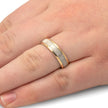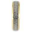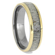 A naturally shed deer antler wedding band with 14k yellow gold edges. This titanium ring is inlaid with antler and surrounded by gold sides. The design of this men's or women’s ring is so that you can wear it like a solid gold ring without having to pay the full cost of an expensive ring.