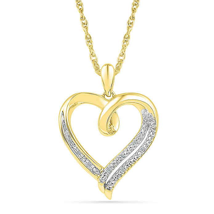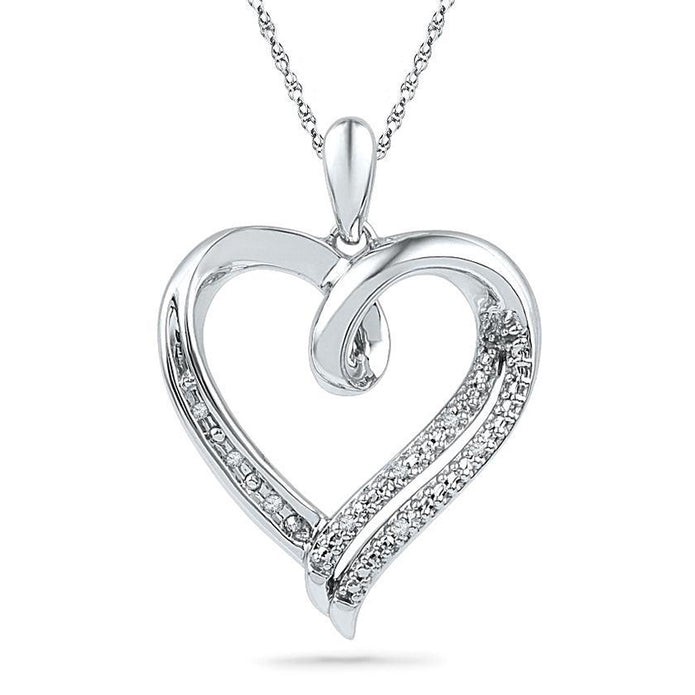 Present her with a gift from the heart. This pendant necklace has a timeless presence and is sure to be cherished for years to come. A sterling silver or gold diamond necklace features an open heart design that glistens with a trio of diamonds. Each side is decorated with gemstones that will match the sparkle in her eye.