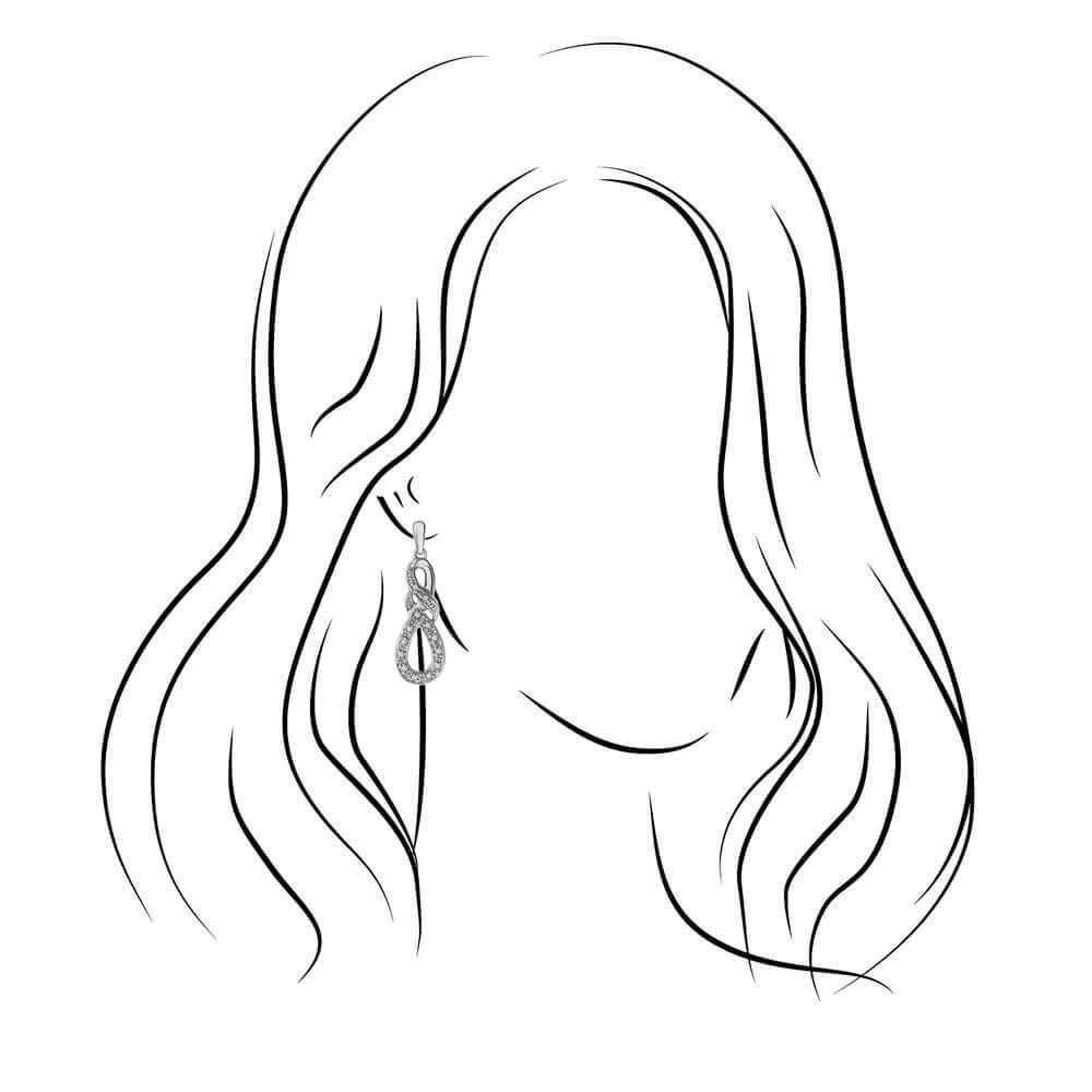 Update your jewelry collection with these sophisticated diamond knot drop earrings featuring an infinity symbol. The intricate design of these diamond dangle earrings cannot be overlooked. Available in your choice of silver or gold.