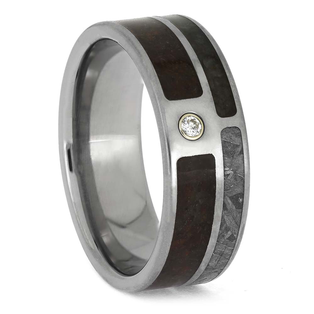 Materials in Diamond Wedding Band with Dinosaur Bone, Petrified Wood and Meteorite
