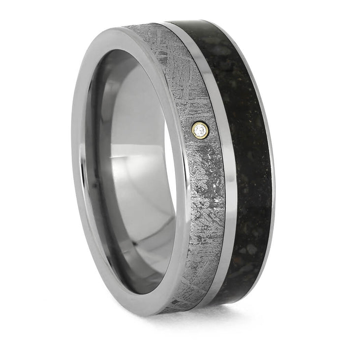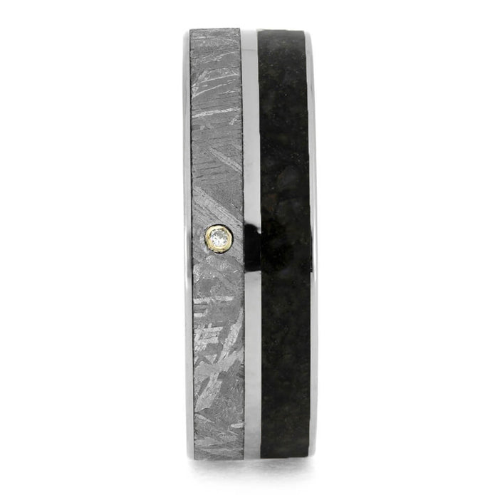 Materials in Dinosaur Bone Wedding Band With A Diamond In Meteorite