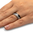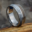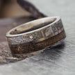 One of my most popular styles is further enhanced with a delicate diamond addition. The stone is set in a solid 14k white gold bezel. This meteorite and dinosaur bone wedding band is a timeless piece and true testament of enduring love.
