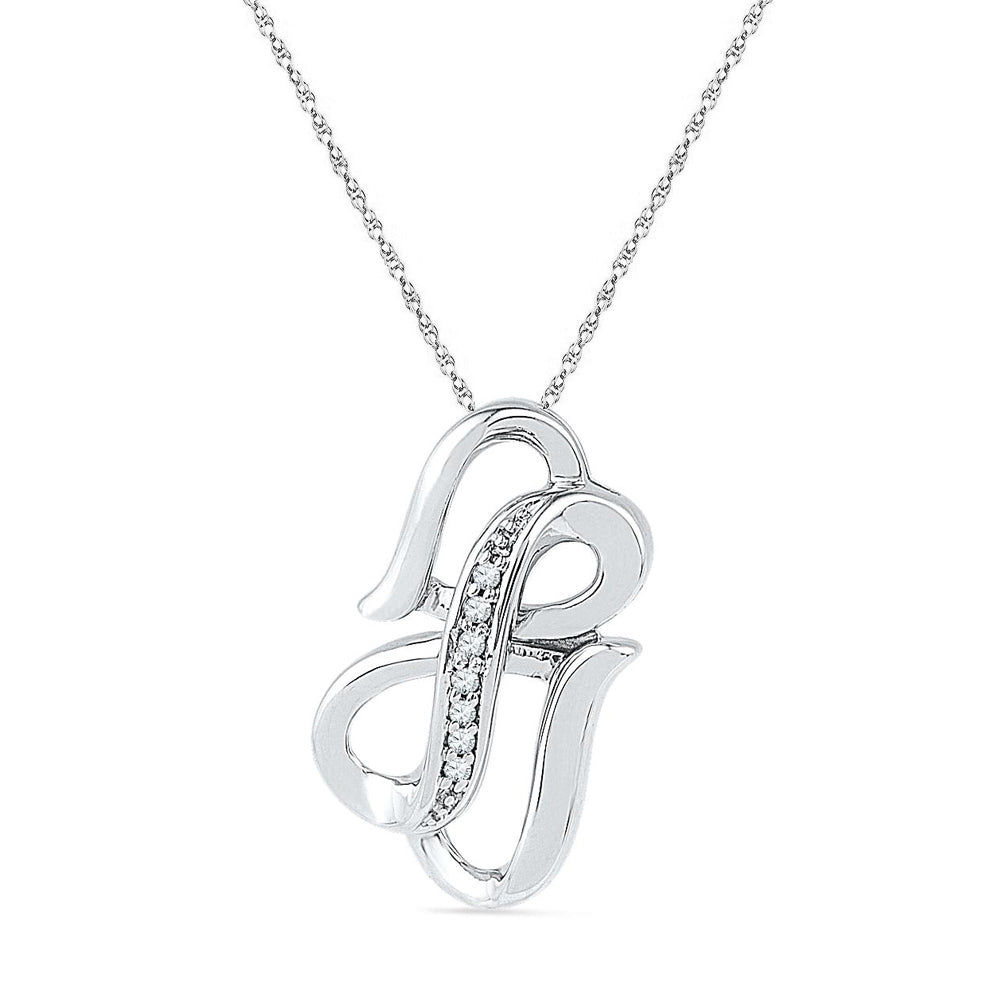 Crafted in your choice of sterling silver or gold, this double infinity necklace is full of symbolism. Two open hearts are displayed from a high polished rope chain, and are intertwined with an infinity symbol. Decorated in 0.03 ct. t.w. of diamonds, this necklace is symbolic of your hearts being forever one.