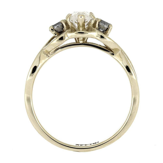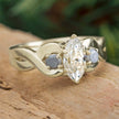 Engagement Ring with Meteorite and Moissanite Stones in White Gold
