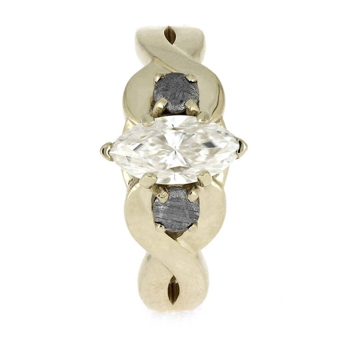 Materials in Engagement Ring with Meteorite and Moissanite Stones in White Gold