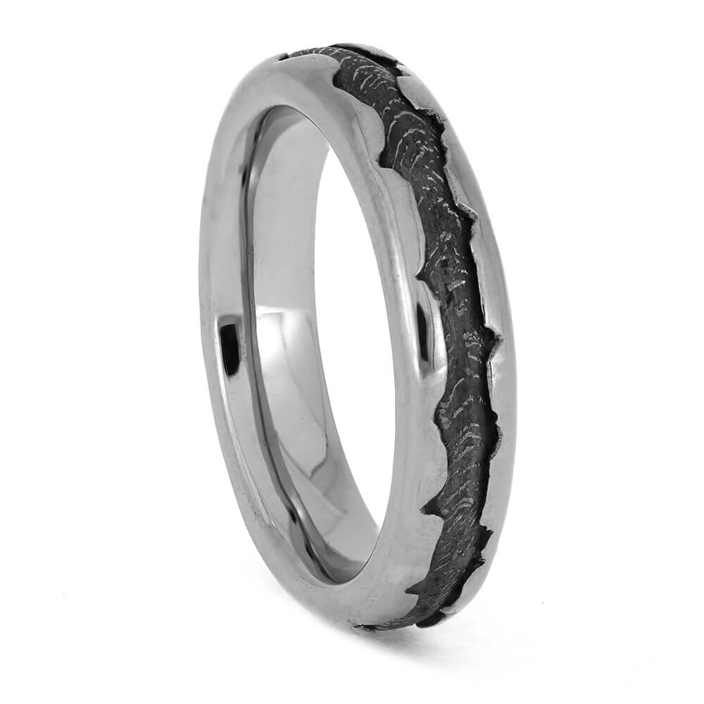 Gibeon Meteorite Wedding Band, Wavy Design Titanium Ring