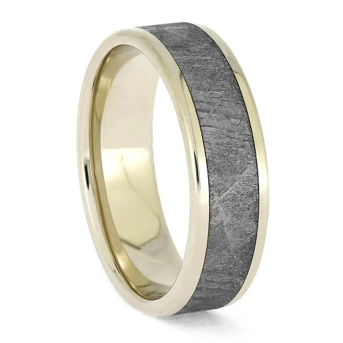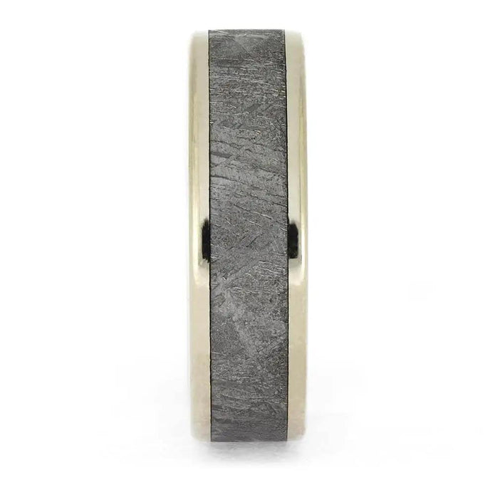 Handmade Meteorite Wedding Band in White Gold, 6mm