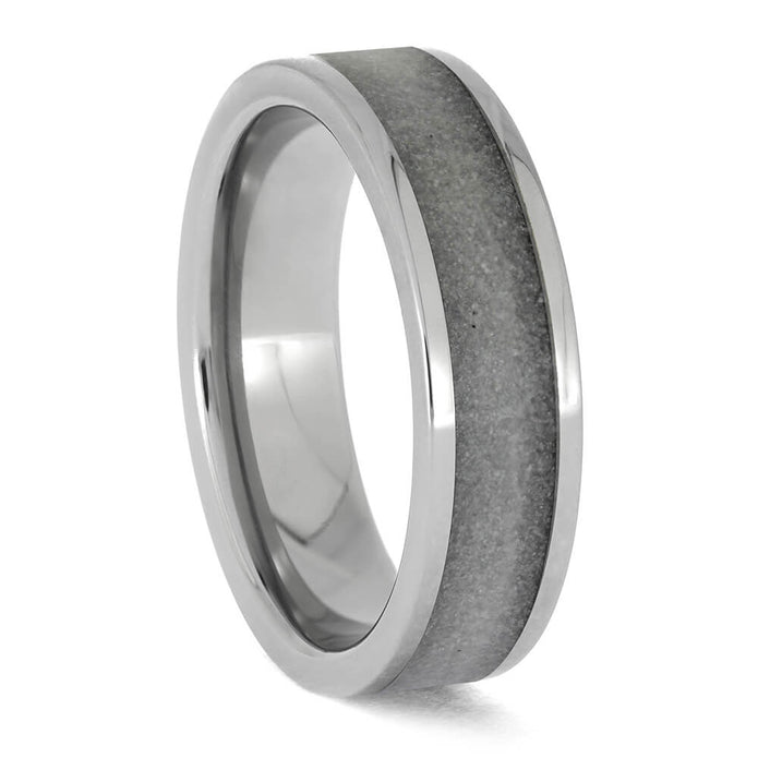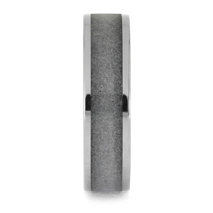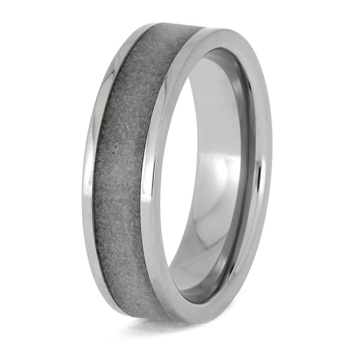 Wear a subtle and sleek piece of nature with this handmade white sand wedding band! The polished titanium design highlights the natural beauty of the sand, showcasing its unique texture and luster.