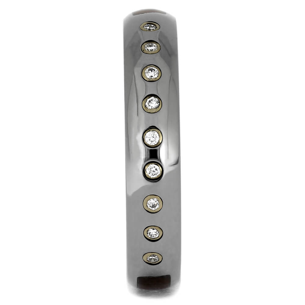 Materials in Honduran Rosewood Burl and Titanium Ring with 9 Bezel Set Diamonds