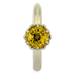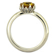 A brilliant yellow sapphire center stone sits in a lotus setting with diamonds accents. A simple 14k white gold band allows the gemstone flower to be the center of attention.