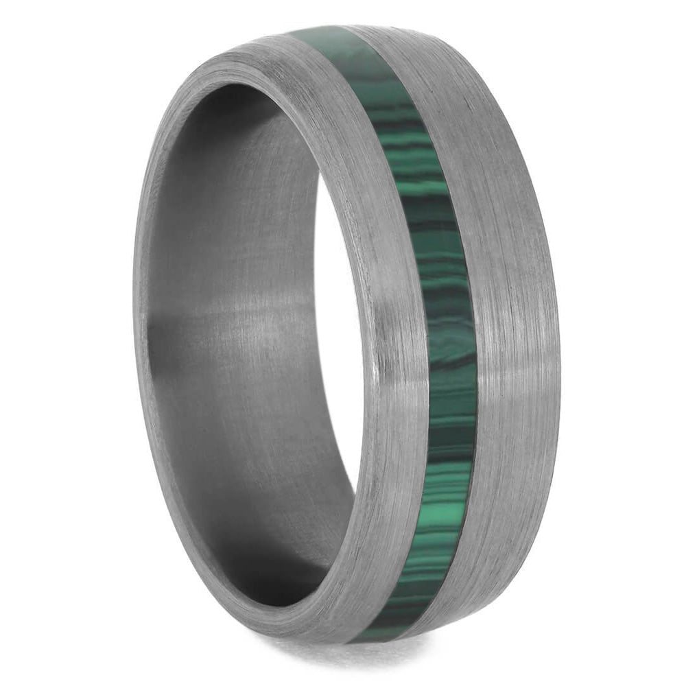 Materials in Malachite Ring, Brushed Titanium Wedding Band