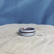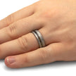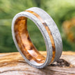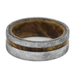 This wood wedding band fits a subtle pinstripe of black ash burl wood between pieces of authentic Gibeon meteorite. Inside the ring sleeve, a coordinating overlay of the same burl wood. The meteorite's distinct pattern is perfect for a meaningful wedding band since no two pieces are alike, much like your love.