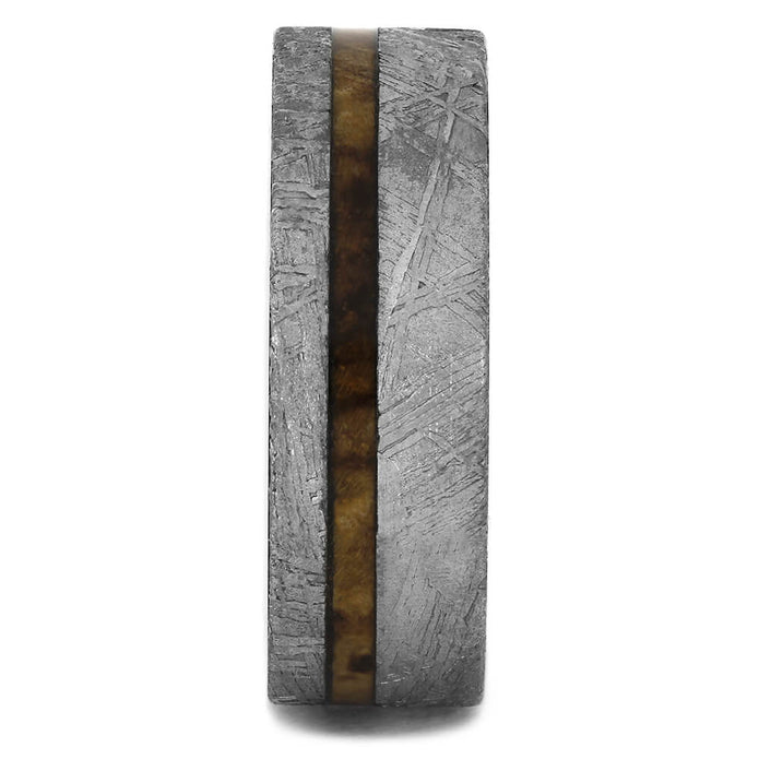 Men's Meteorite Wedding Band with Black Ash Burl Wood