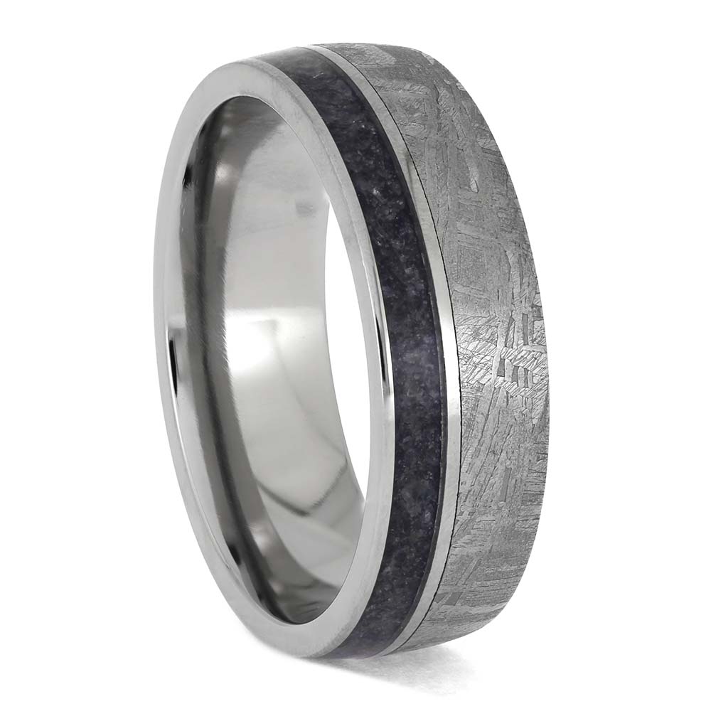 Materials in Meteorite and Sapphire Wedding Band for Men or Women