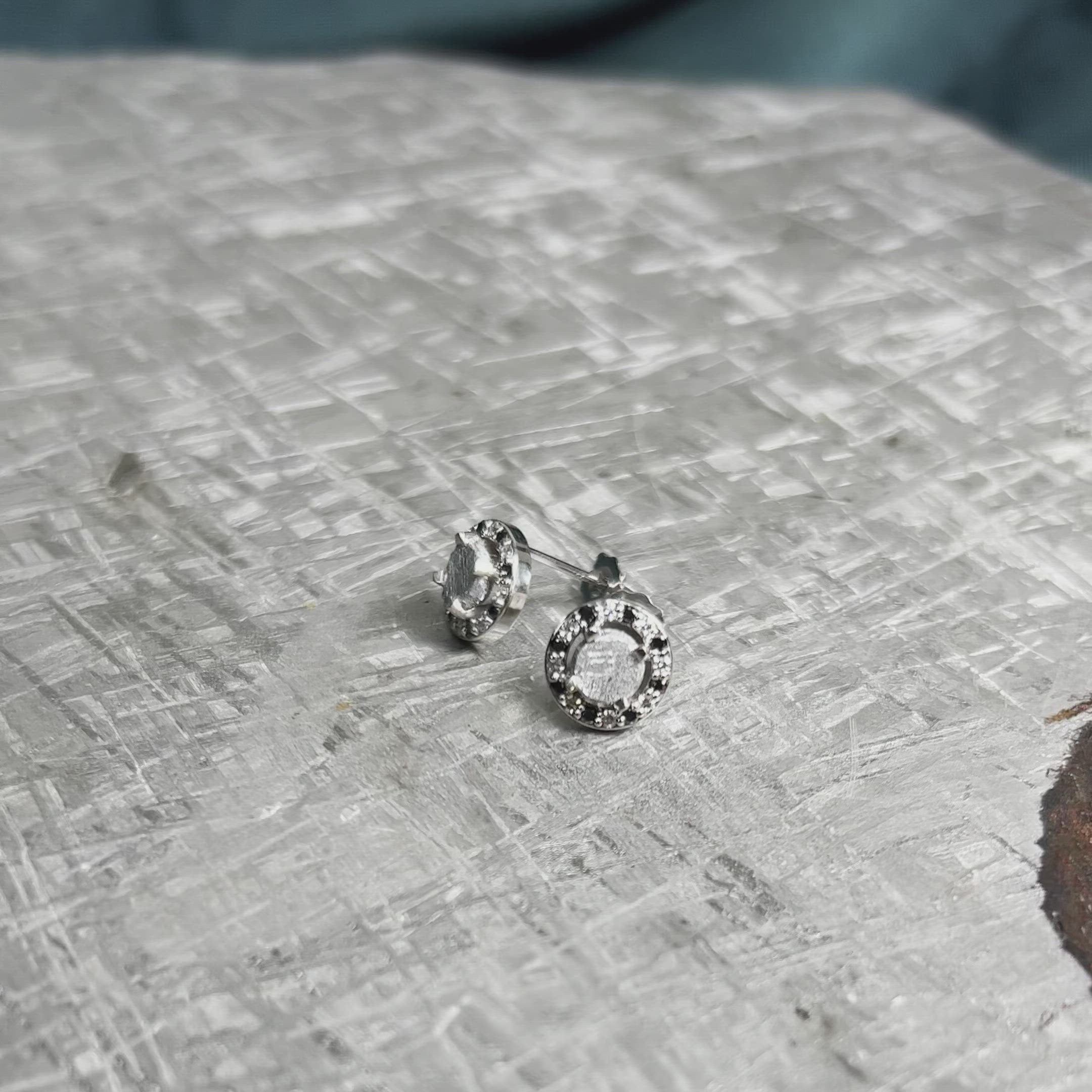 Meteorite Stud Earrings with White & Black Diamonds