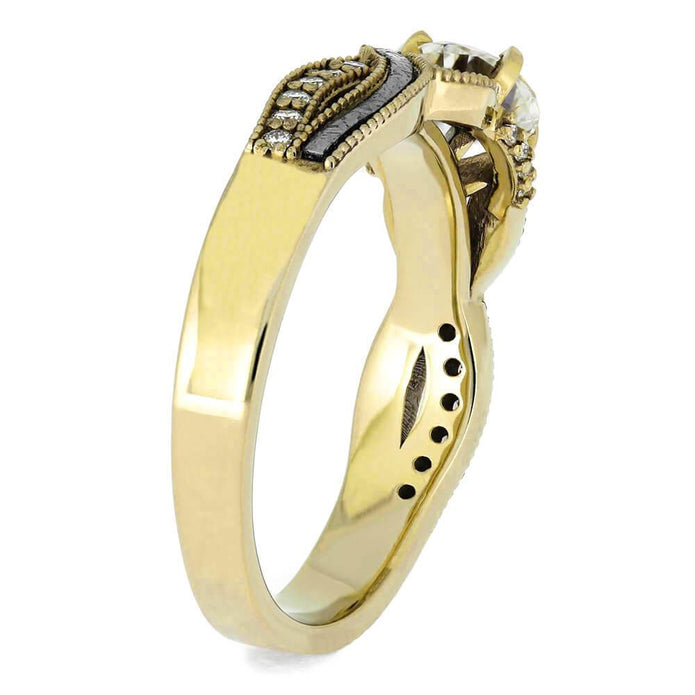 Meteorite Engagement Ring With Yellow Gold & Diamonds