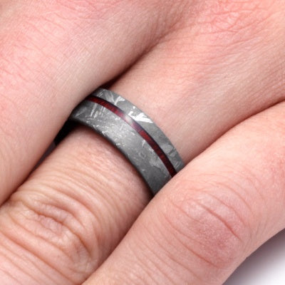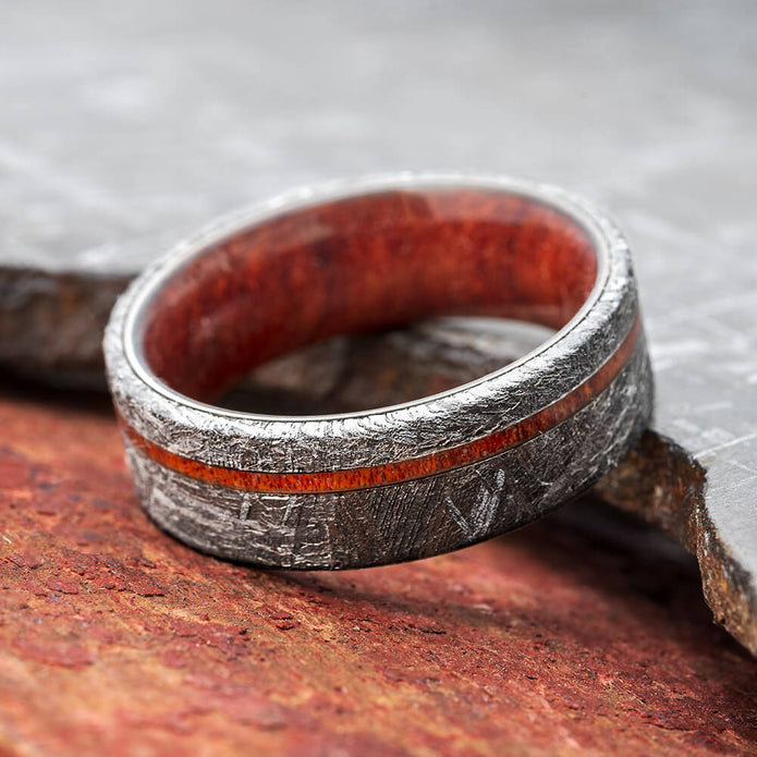 Meteorite Ring with Bloodwood Sleeve and Pinstripe