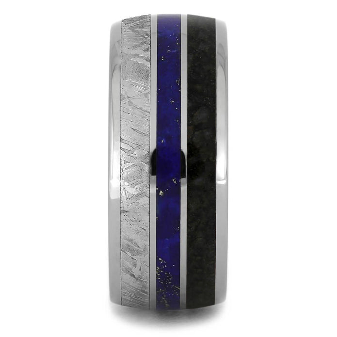 Materials in Meteorite Ring With Dinosaur Bone And Lapis Lazuli In Titanium