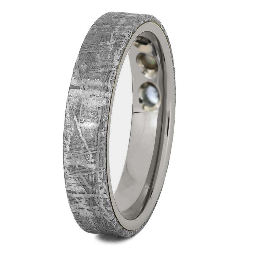 Full of mysterious allure, this white opal ring is truly magical. This meteorite ring features three gemstones set in 14k white gold bezels. Get this titanium wedding band for a gorgeous and unique way to symbolize your special love!