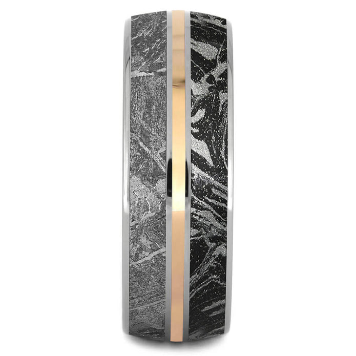 Materials in Meteorite and Mokume Gane Ring with Gold Pinstripe
