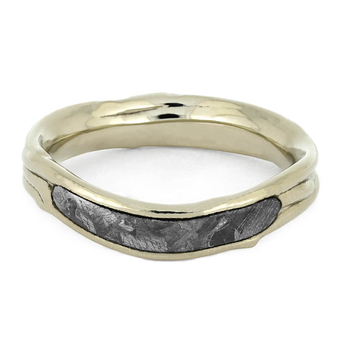 This white gold shadow band is designed to look like a branch, and is inlaid with Gibeon meteorite.