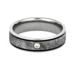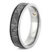 Show off one of Earth's rarest materials with this meteorite wedding ring for men. This titanium ring features a glistening moissanite gemstone set in a white gold bezel, which is flanked by two decorative black pinstripes. This meteorite wedding band is ideal for astronomers and space enthusiasts!
