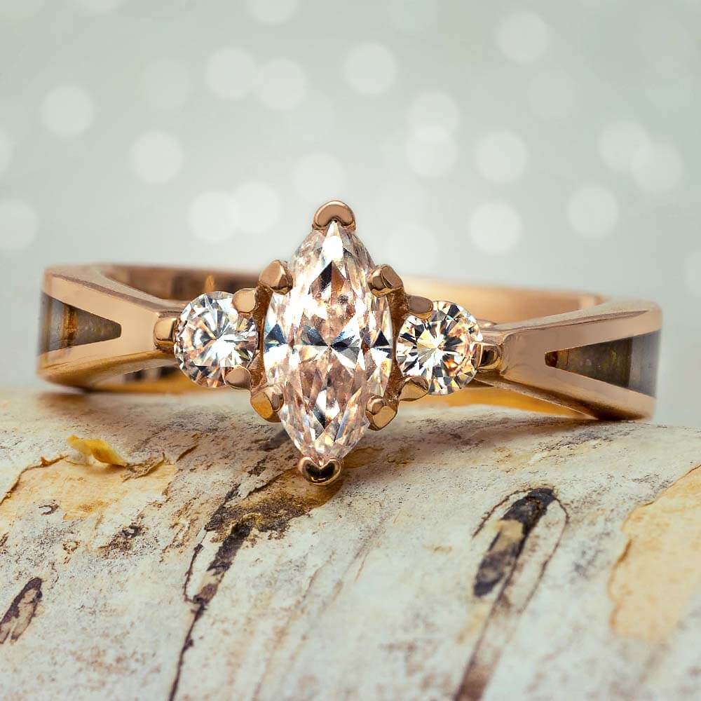 Marquise Cut Moissanite Engagement Ring With Dinosaur Bone Inlay