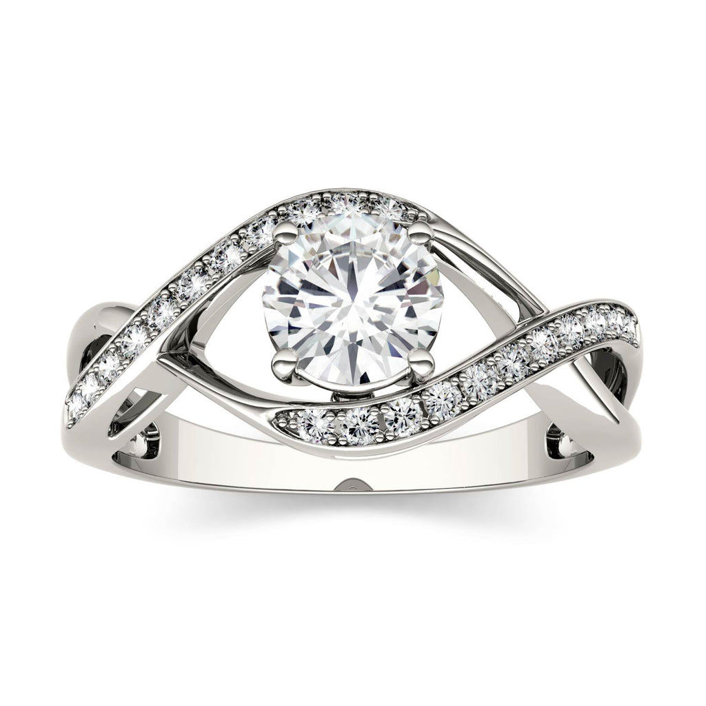 Charles & Colvard 6mm Moissanite Swirl Solitaire Ring in White Gold