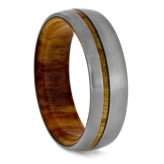 Olive Wood Wedding Ring with Wood Sleeve and Pinstripe-1430