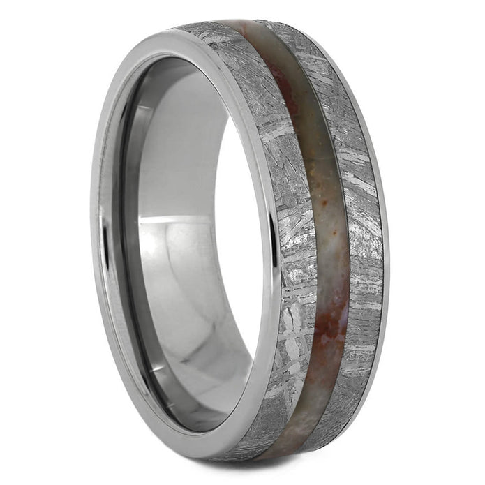 Materials in Petrified Wood & Meteorite Men's Wedding Band
