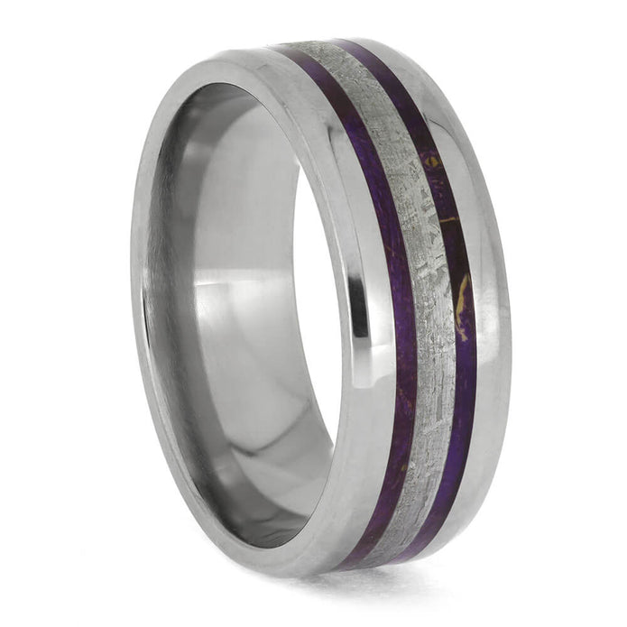 Purple Burl Wood and Meteorite Inlaid in Titanium
