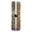This solid gold memorial ring features the ashes of a lost loved one and authentic, Gibeon meteorite. The cremains of your beloved are inlaid in the ring so you can always keep them nearby. I