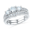 This three stone diamond engagement ring set says I will love you forever. A three stone setting is accented by smaller brilliant diamonds for a timeless look that will never be overlooked. A diamond wedding band is the finishing touch to this everlasting ring set. This band nestles perfectly flush against the engagement ring for a seamless fit every-time.