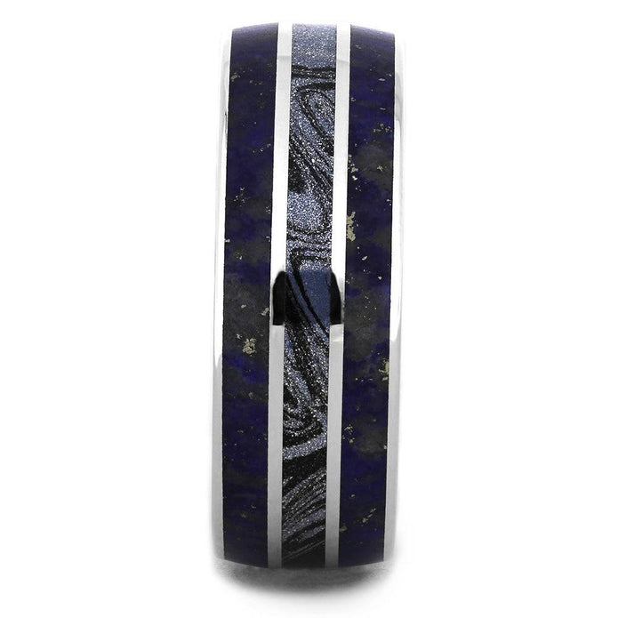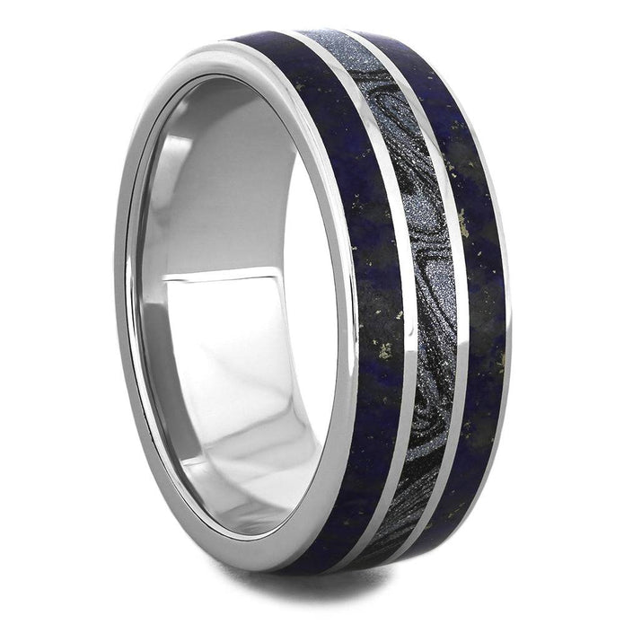 Titanium & Blue Lapis Lazuli Wedding Band with Mokume