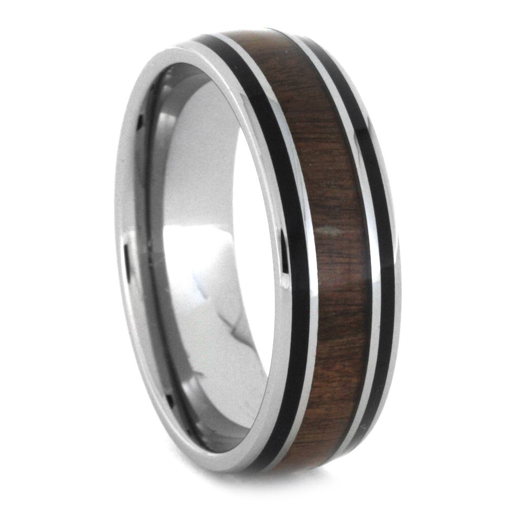 Materials in Men's Wedding Band With Wood Black Pinstripes