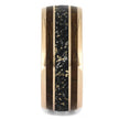 Whiskey Barrel Meteorite Men’s Wedding Band come together to create an extraordinary men's wedding band. Crafted in your choice of polished, solid gold. The stardust within the center pinstripe will showcase flecks of coordinating gold.