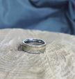 This wooden men's wedding band features sleek, polished tungsten interrupted by an offset pinstripe of beautiful whiskey barrel oak wood. A manly ring for your groom or a fantastic everyday band. Crafted from tough tungsten, this ring is durable and scratch-resistant.