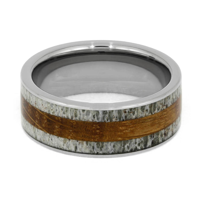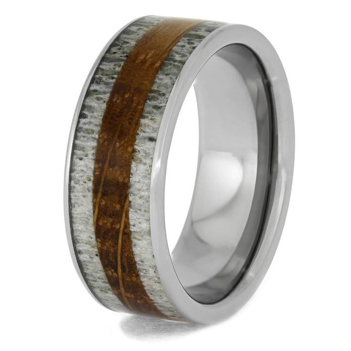 Materials in Whiskey Barrel Wood And Antler Men's Ring