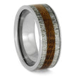 One of my popular styles has arrived with a wood that is unbelievable. This titanium and deer antler ring is equipped with a wood ring fashioned from a genuine whiskey barrel. Great as a men's wedding band for guys who enjoy a glass of whiskey as well as the great outdoors.