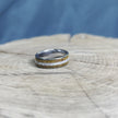 Crushed mother of pearl runs down the middle of this whiskey barrel oak wood wedding band. The wood is from an authentic barrel used in the whiskey making process and is a great addition to a masculine, men's wedding band.