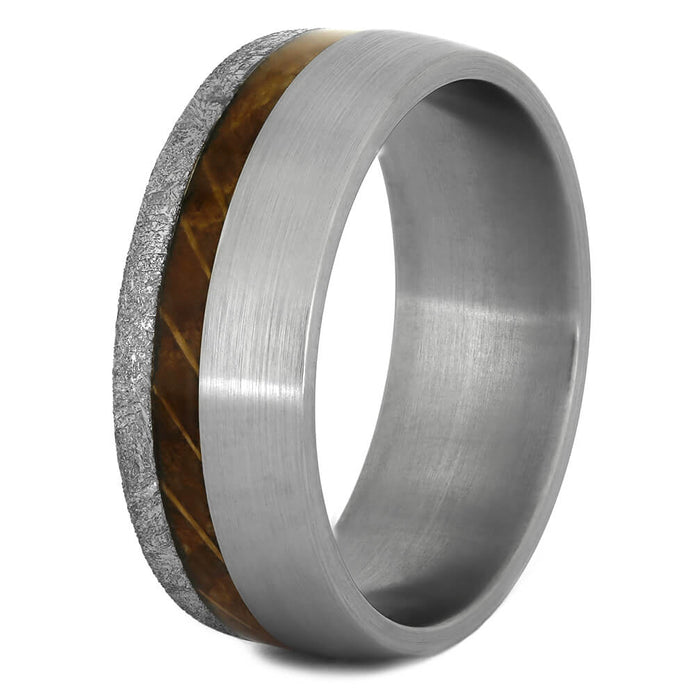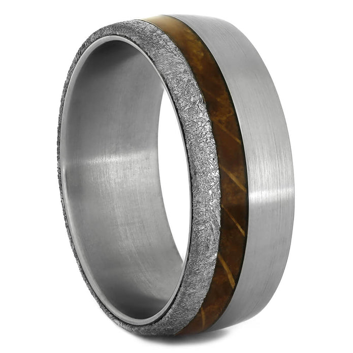Materials in Whiskey Barrel Wood Wedding Band with Gibeon Meteorite