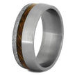 This men's wedding band pairs rugged whiskey barrel wood with otherworldly Gibeon meteorite. The hypoallergenic titanium in this handmade ring also makes up the sleeve. Call all the shots with this whiskey barrel wedding band!