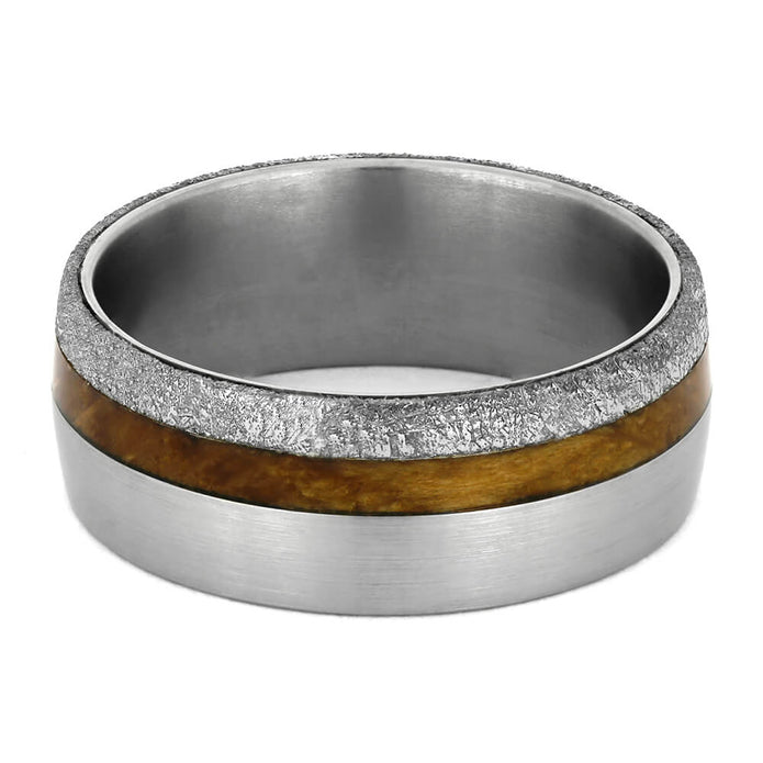 Whiskey Barrel Wood Wedding Band with Gibeon Meteorite