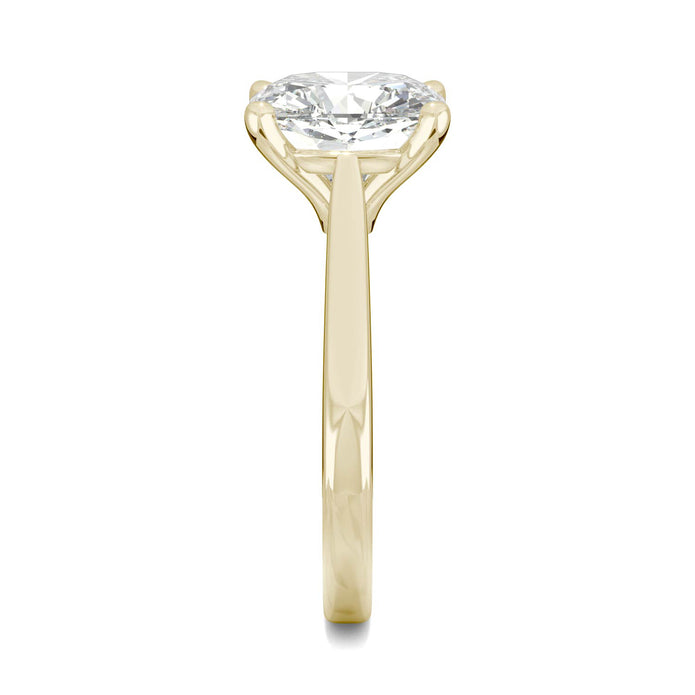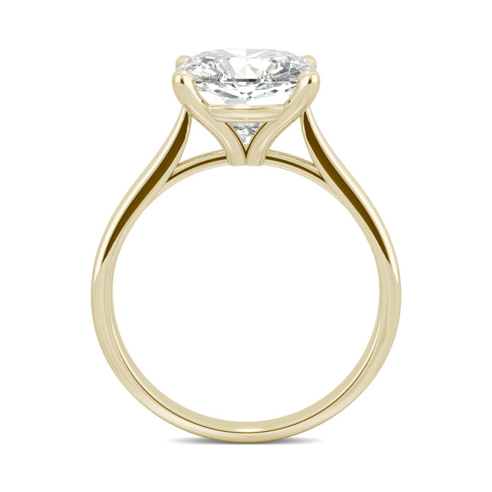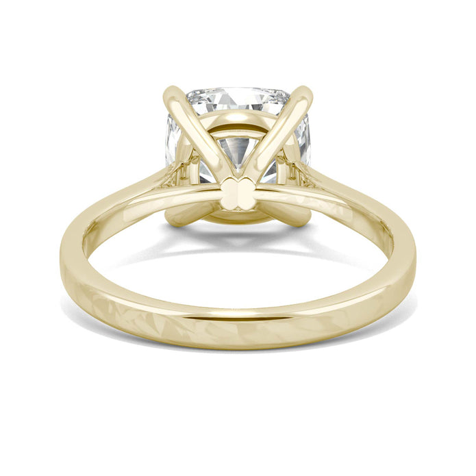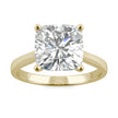Yellow Gold Solitaire Ring with a Cushion Cut Charles & Colvard Moissanite