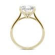 This 9mm, 3.3 ct Charles & Colvard moissanite, mounted on a solid 14k yellow gold band, is the center of attention! Simple, yet elegant, the stone is the star of this ring.