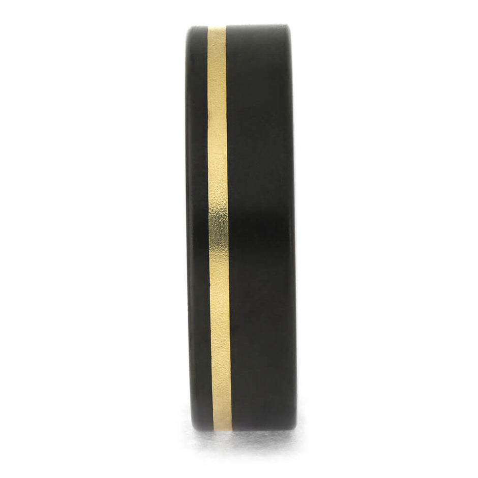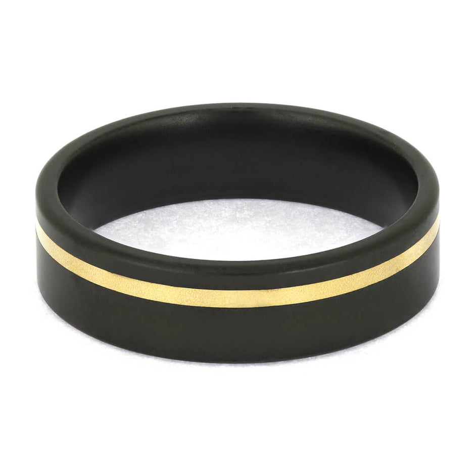 Materials in Black Zirconium Wedding Band with Gold Pinstripe