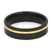 Keep things simple yet sophisticated with this black zirconium and gold wedding band. This 6mm ring is crafted from heat-treated black zirconium and features a 14k yellow gold pinstripe for a classical touch on a modern design.