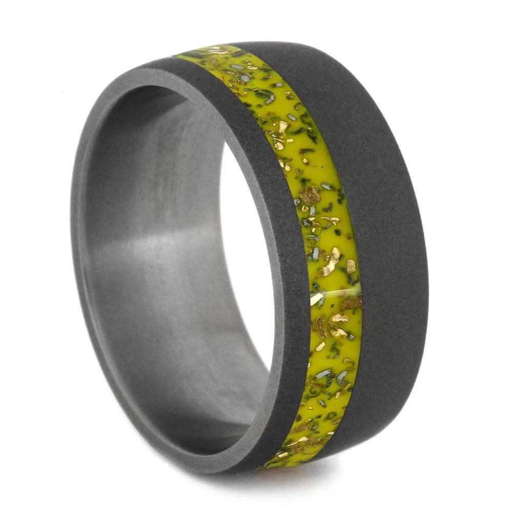 Yellow Stardust™ Men's Wedding Band In Sandblasted Titanium